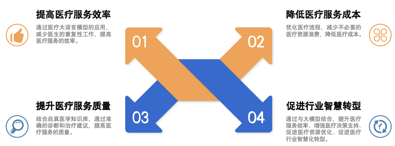 启真医学大模型采用 “数据 + 知识双轮驱动” 的独特技术路线。它巧妙地将大模型技术与医学知识库深度融合,紧密贴合医疗应用场景的实际需求。在医学数据治理、医学推理、医患问答、病历自动生成以及临床决策辅助支持系统等多个关键领域不断进行迭代研发,有力地推动了大模型技术在医疗行业的落地应用,让医疗服务更加智能化、精准化。