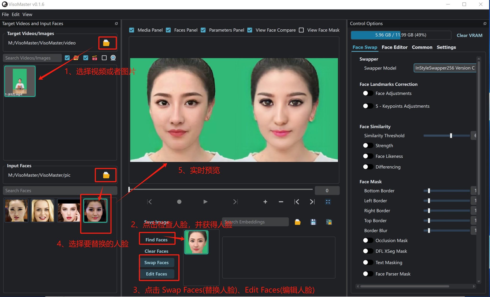 - 在处理过程中,可随时暂停进行参数调整,以达到最佳的换脸效果。