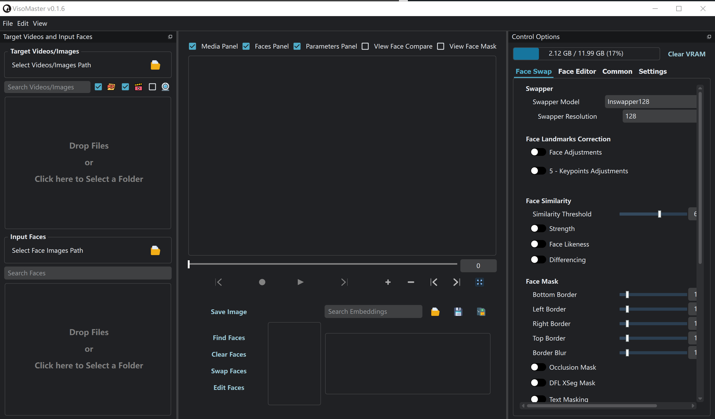 - 中央区域:这里是实时预览窗口和视频控制面板的所在地。用户可以在这里实时查看换脸效果,并对视频进行播放、暂停、快进等操作。