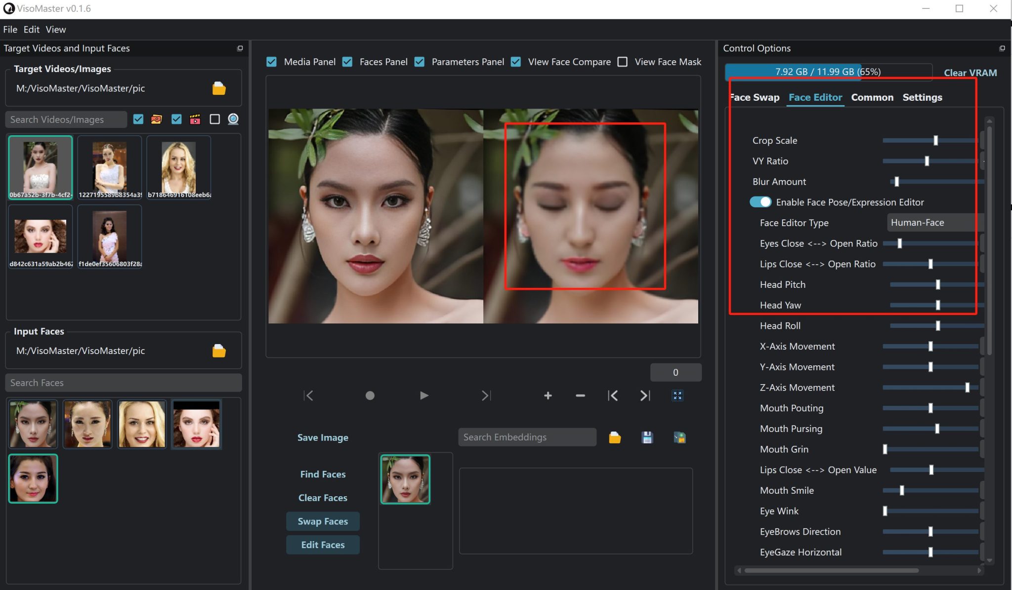 - 使用面部表情编辑器,对换脸后的面部表情进行微调,使表情更加自然。