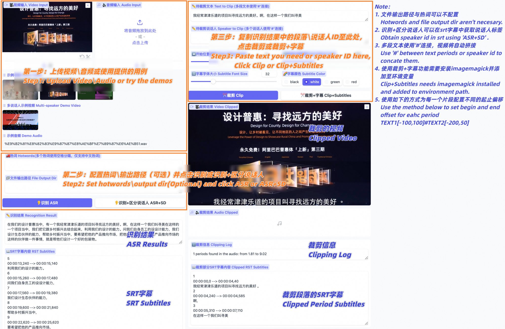 - 智能语音解析引擎:搭载 Paraformer 高精度 ASR 模型,毫秒级完成视频语音转文本,精准捕捉每一句对话
