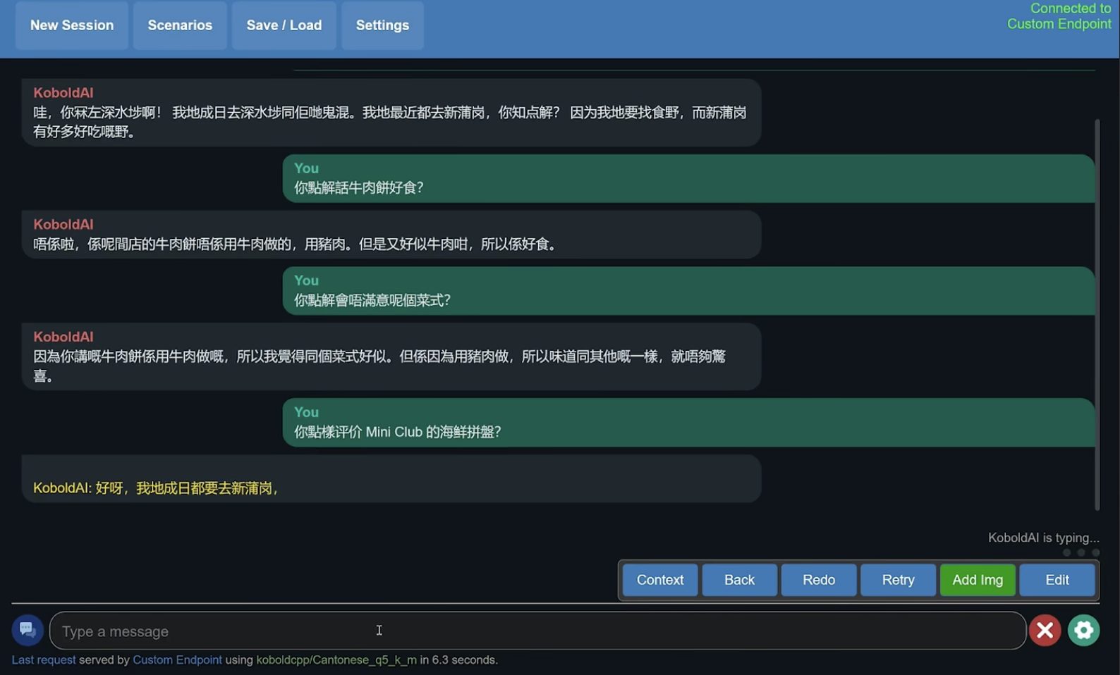 - 启动体验:以 AMD 显卡为例,双击 koboldcpp_rocm.exe,软件启动后会显示检测到的显卡型号。接着点击 Launch 按钮,选择 Cantonese_q5_k_m.gguf 模型文件,模型启动后,浏览器将自动打开http://localhost:5001 ,至此,你就可以与模型展开趣味十足的粤语对话啦!