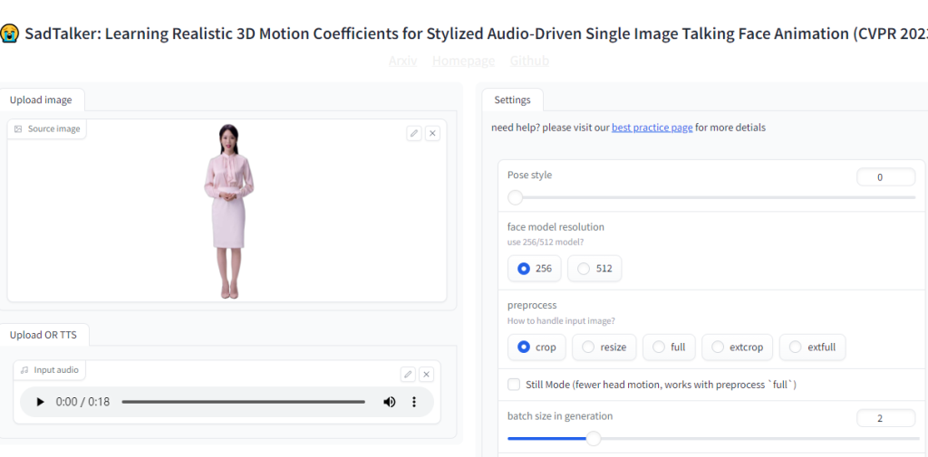 SadTalker:图片与音频的奇妙融合