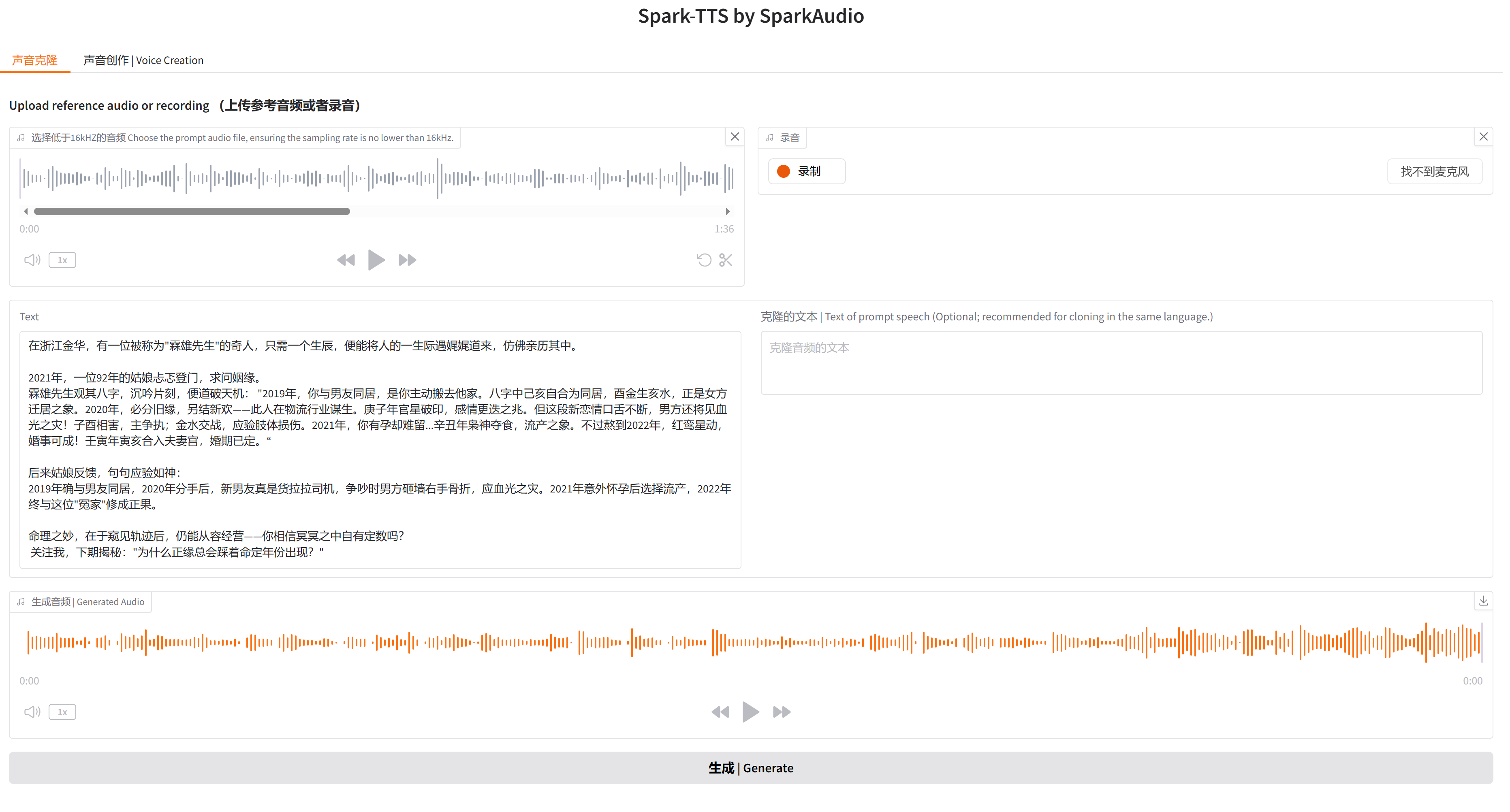 - 系统会自动唤起浏览器,带你无缝切入 Spark-TTS 的精彩世界,开启语音创作。