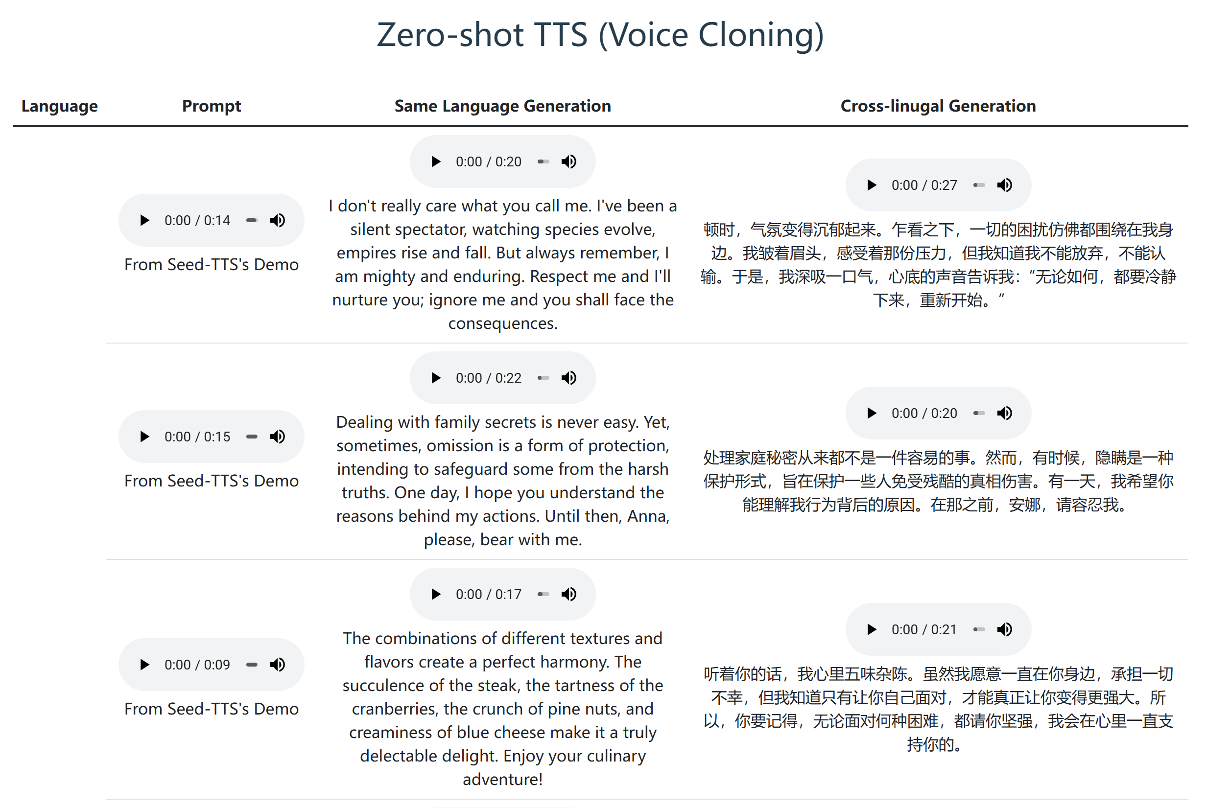 其搭载的 BiCodec 编码器,在简化系统架构的同时,大幅提升推理效率,宛如为语音合成的 “高速列车” 铺设了更顺畅的轨道。而与 Qwen2.5 的深度融合,让大型语言模型能够直截了当地处理 TTS 任务,无需借助额外的声学模型,既精简了流程,又提升了整体效能。